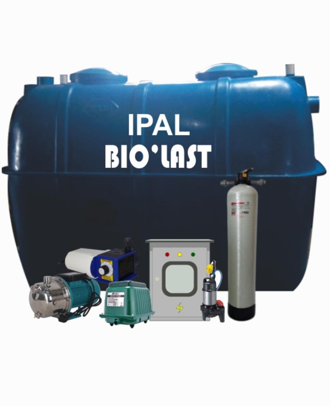 - Modul pengolahan biologis berupa tangki atau chamber fibreglass yang dirancang khusus, dengan media biologis di dalamnya.