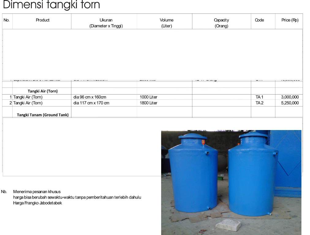 Untuk pemesanan Tangki Torn Fibreglass, silahkan hubungi :